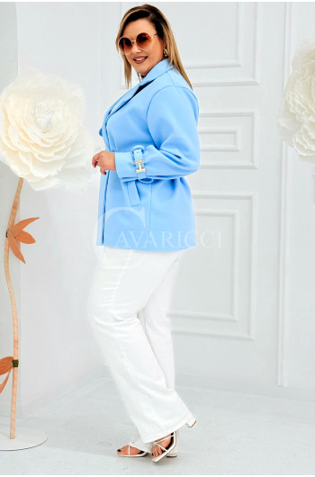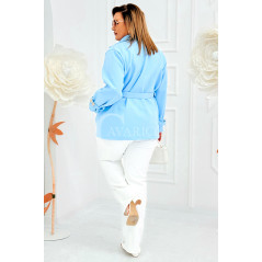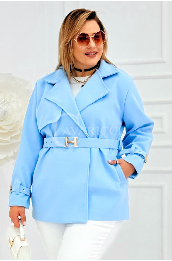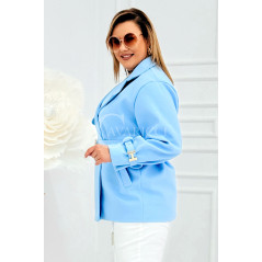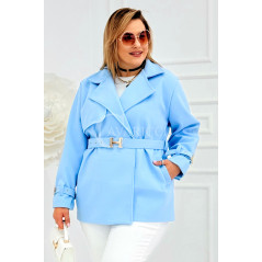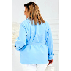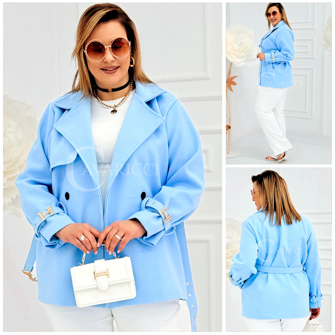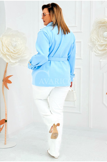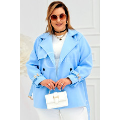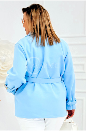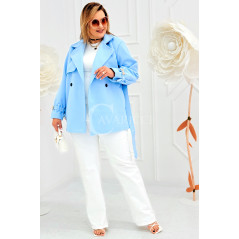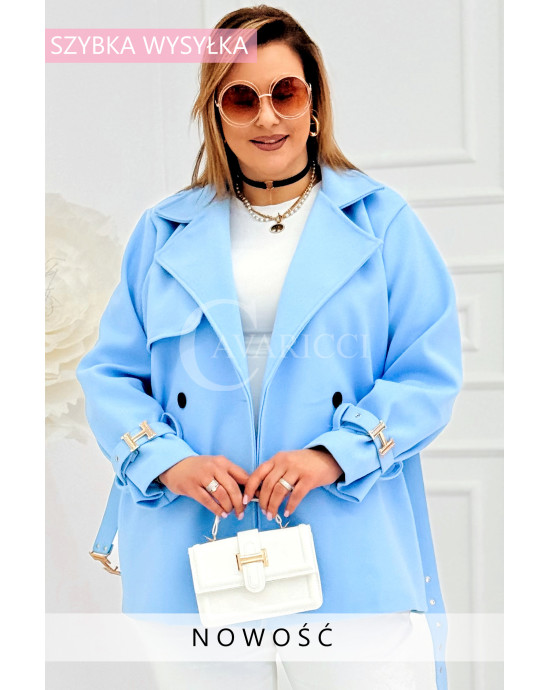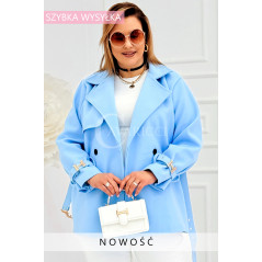 HERMESSITA - wiosenny płaszcz, z paskiem podkreślający sylwetkę w kolorze błękitnym