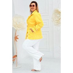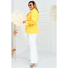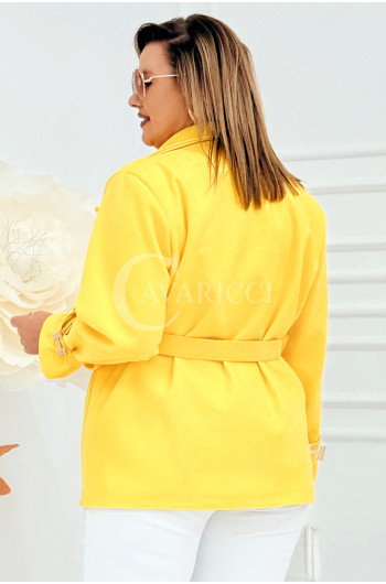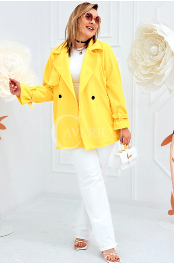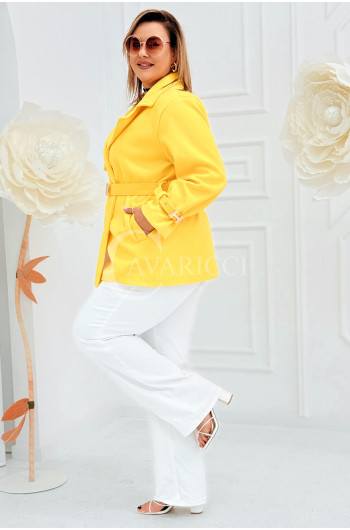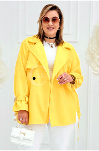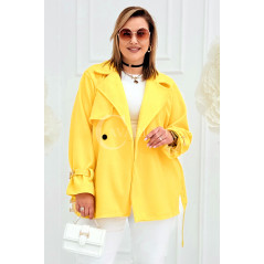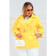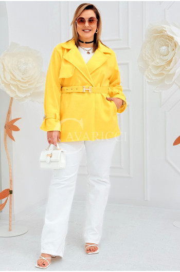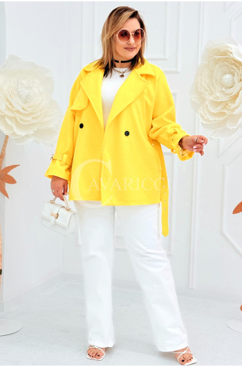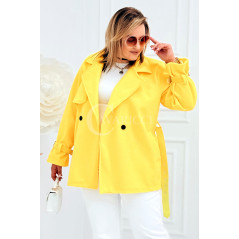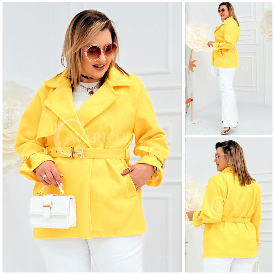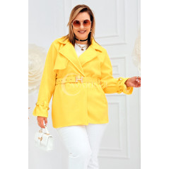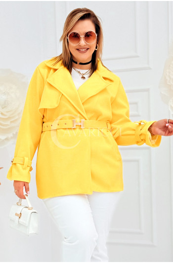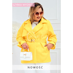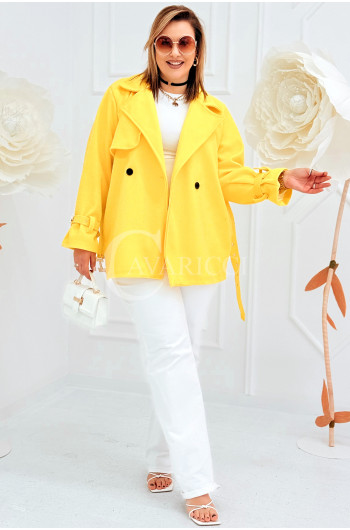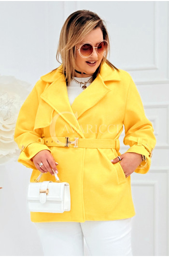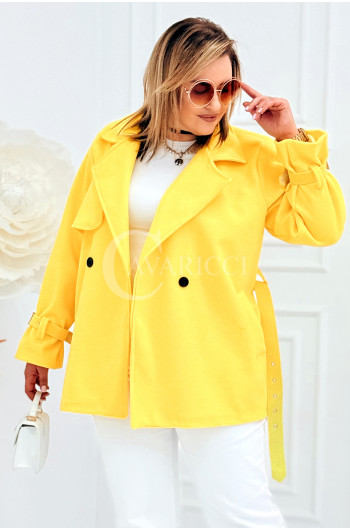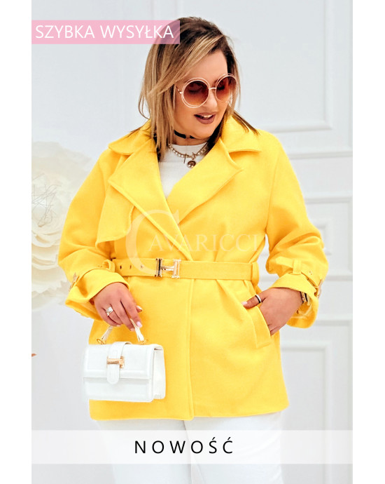 HERMESSITA - wiosenny płaszcz, z paskiem podkreślający sylwetkę w kolorze żółtym