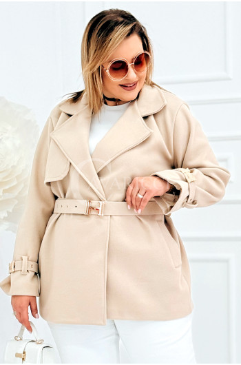 HERMESSITA - wiosenny płaszcz, z paskiem podkreślający sylwetkę w kolorze beżowym