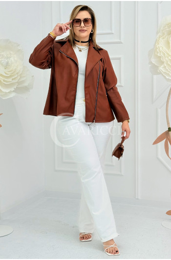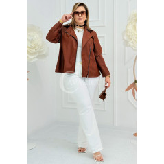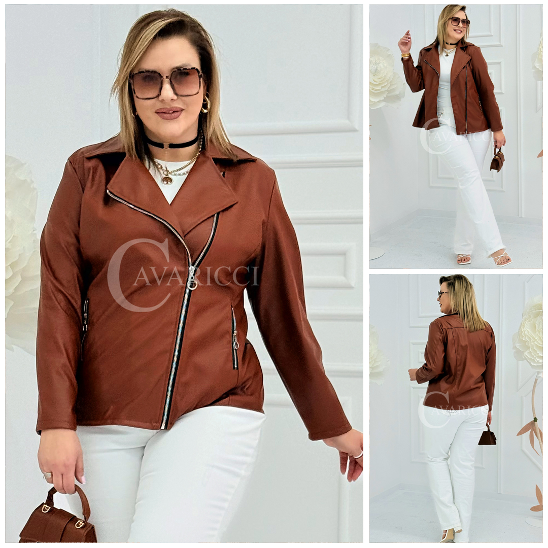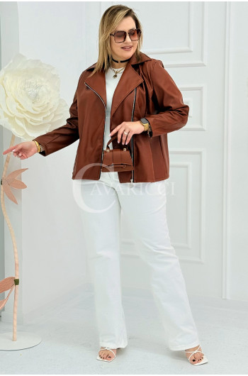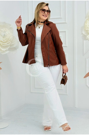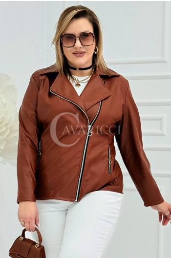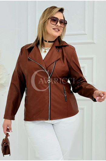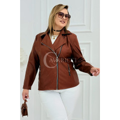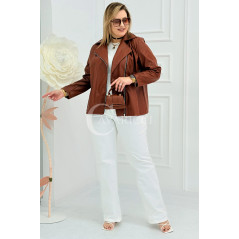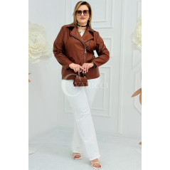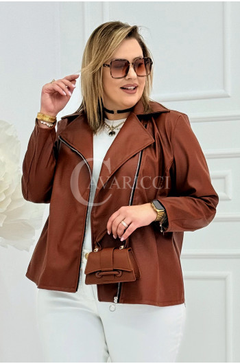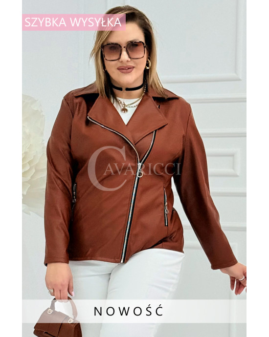 ROMINA - Klasyczna ramoneska na zamek w kolorze brązowym