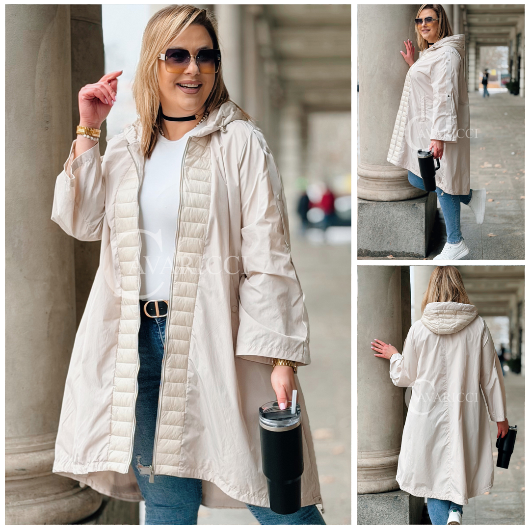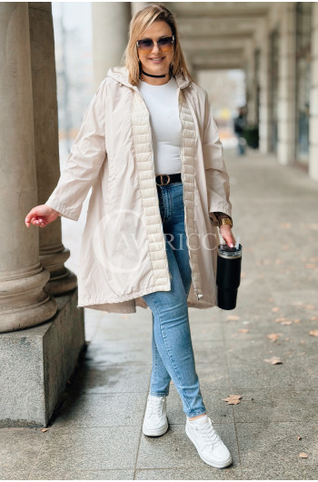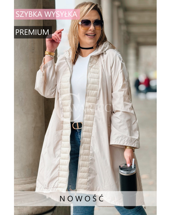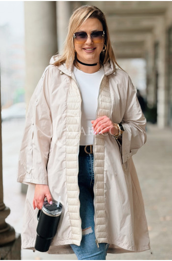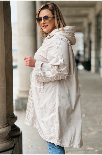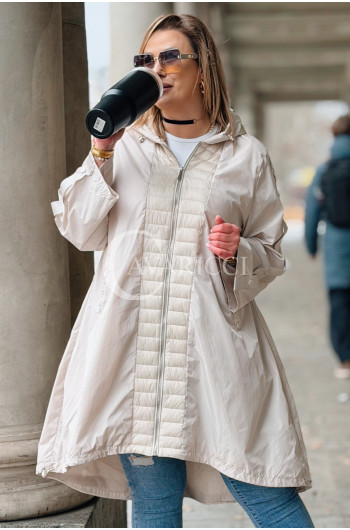 FLORIS - Parka asymetryczna z pikowanymi dodatkami w kolorze beżowym