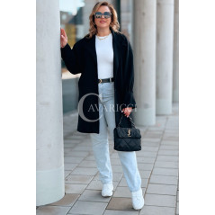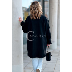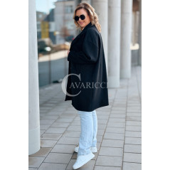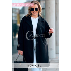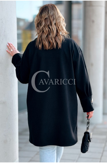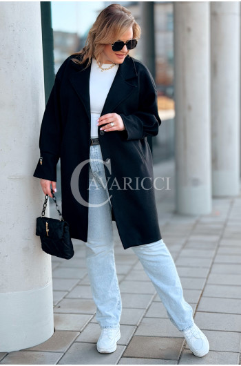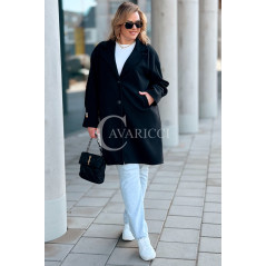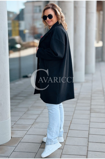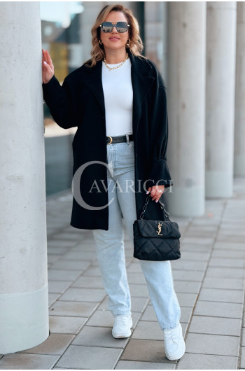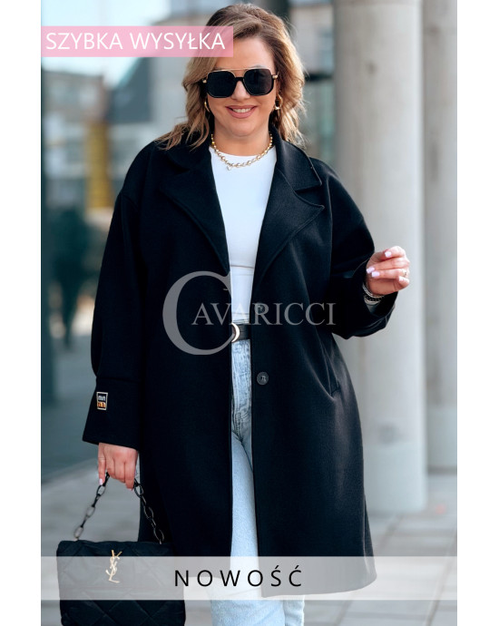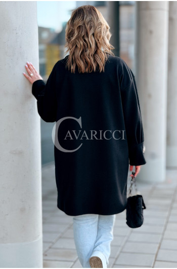 MIUNA - Wiosenny lekki płaszczyk zapinany na guziki z bufiastymi rękawami w kolorze czarnym