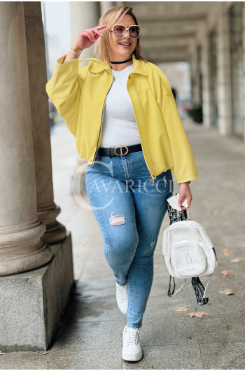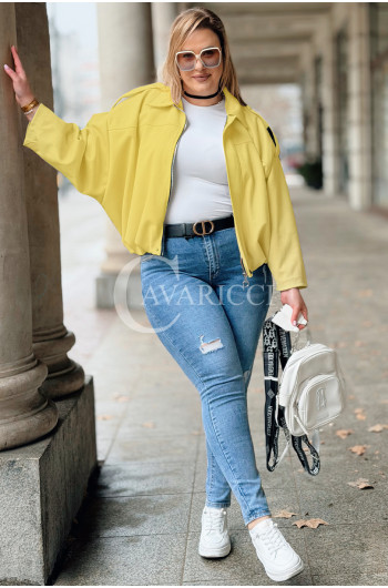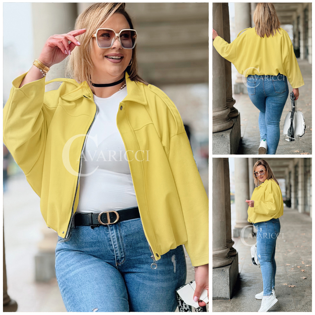 ZAVIA - Stylowa zamszowa bomberka z eleganckim wykończeniem w kolorze bananowym