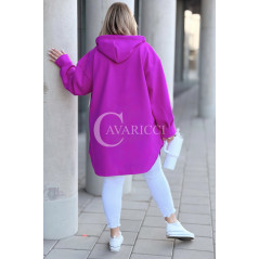 Bluza Flauszowa GIJA – Przedłużany Koszulowy Krój z Kapturem w Kolorze Fuksji