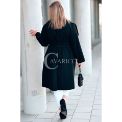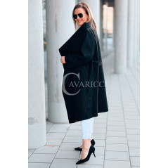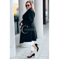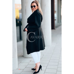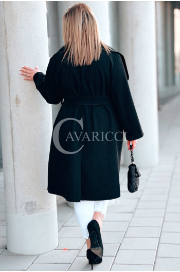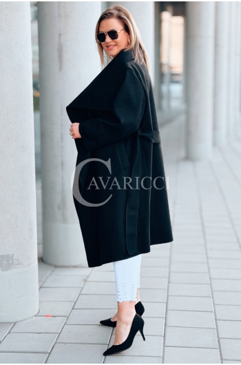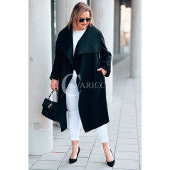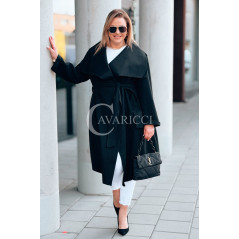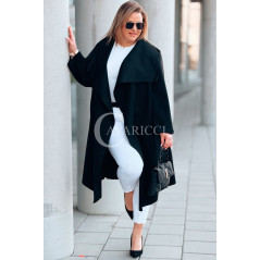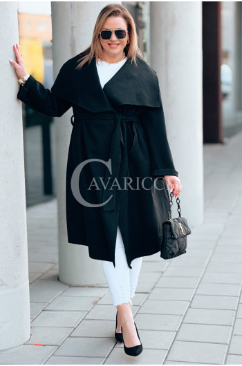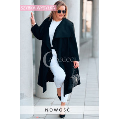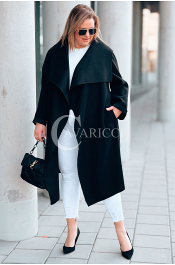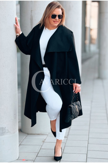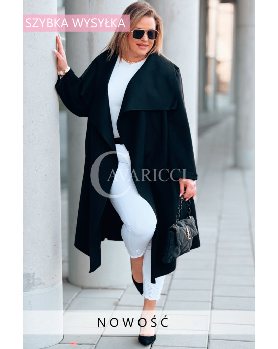 Płaszcz NEOMI – Lekki Fason Waterfall z Paskiem Plus Size Kolor Czarny