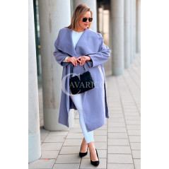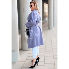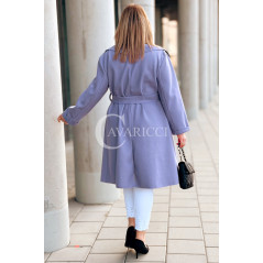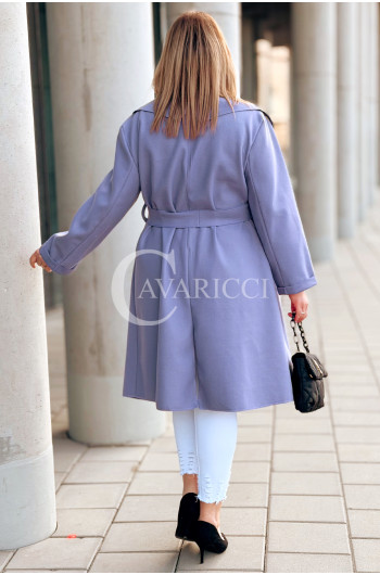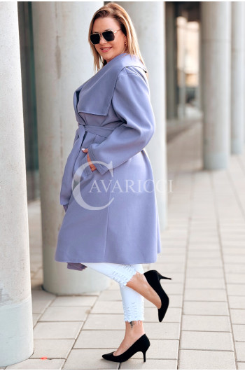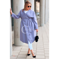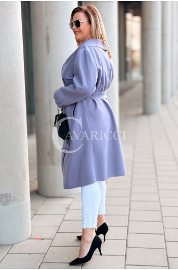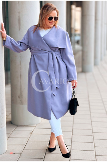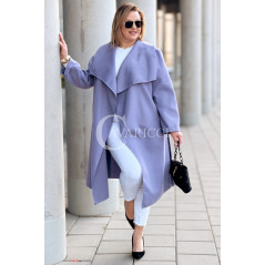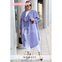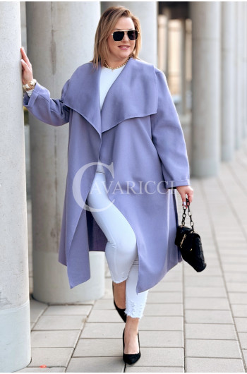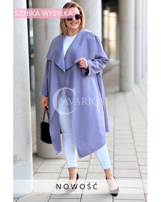 Płaszcz NEOMI – Lekki Fason Waterfall z Paskiem Plus Size Kolor Liliowy