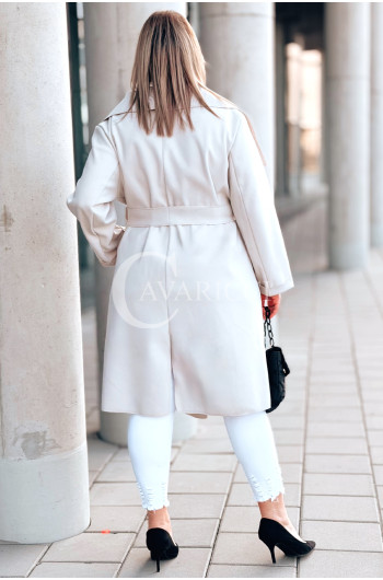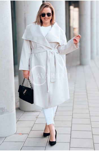 Płaszcz NEOMI – Lekki Fason Waterfall z Paskiem Plus Size Kolor Beżowy