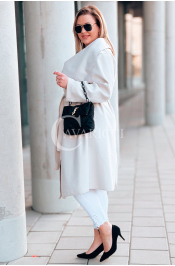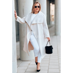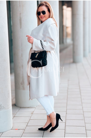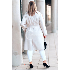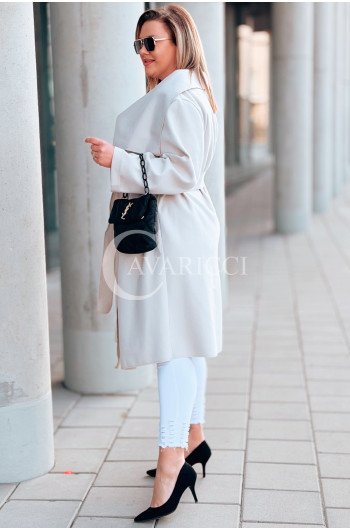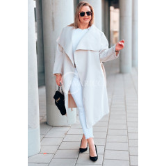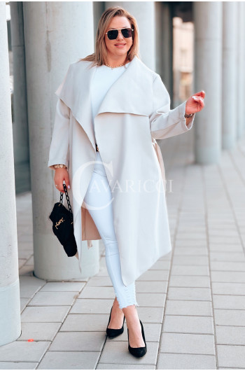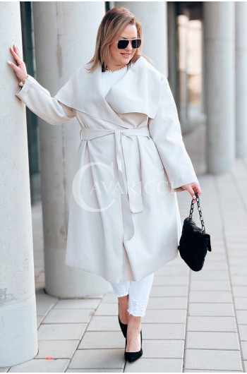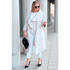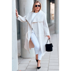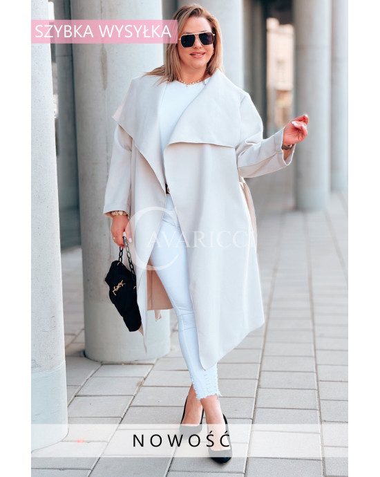 Płaszcz NEOMI – Lekki Fason Waterfall z Paskiem Plus Size Kolor Beżowy
