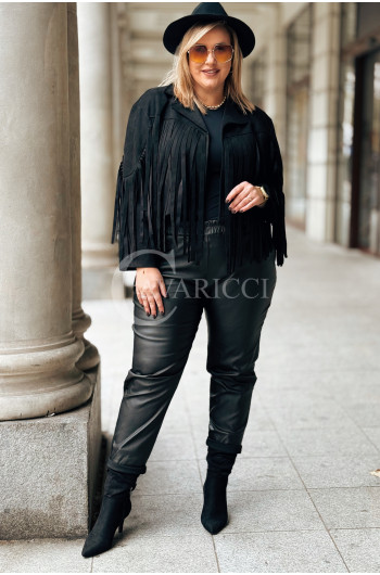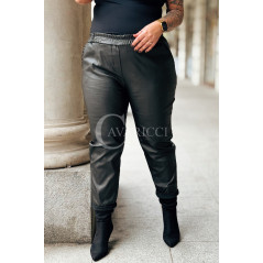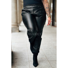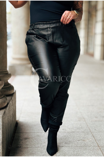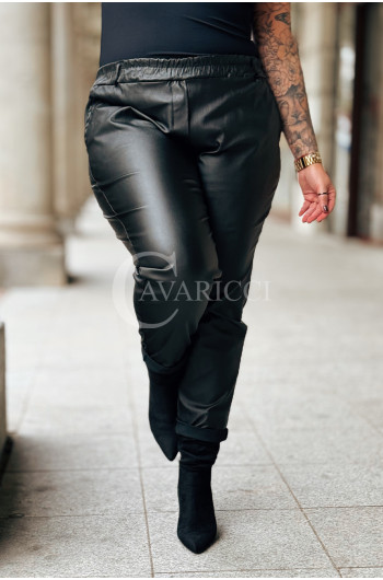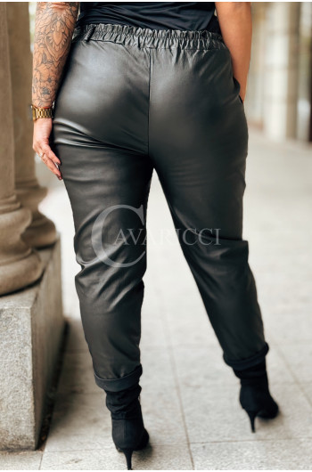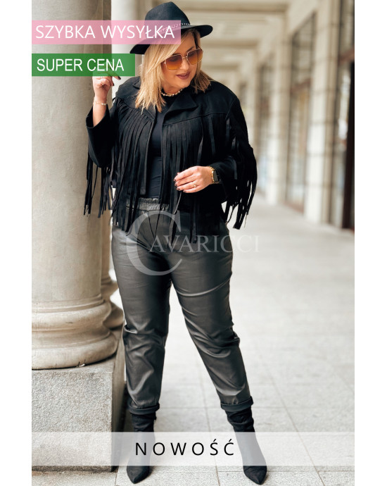 ZORA - miękka eko skóra, świetny krój i modny połysk spodnie w kolorze czarnym