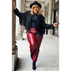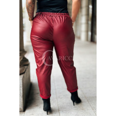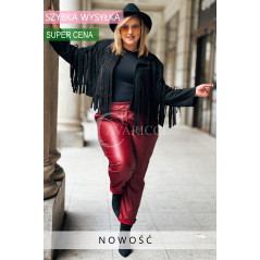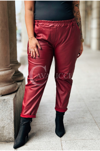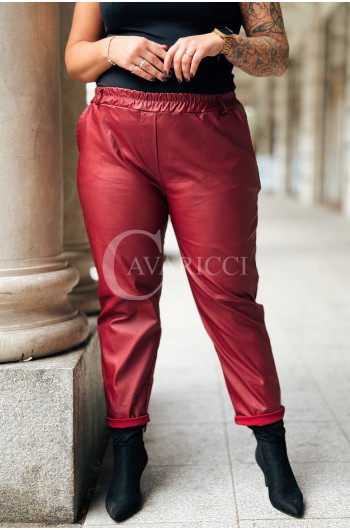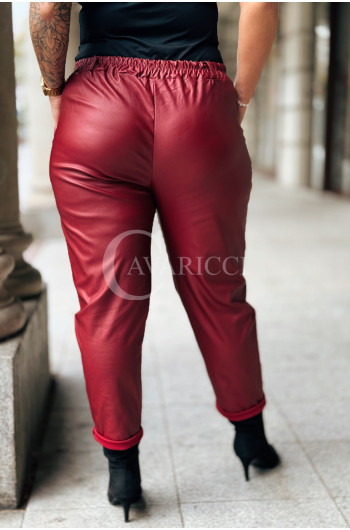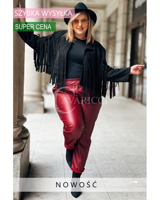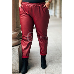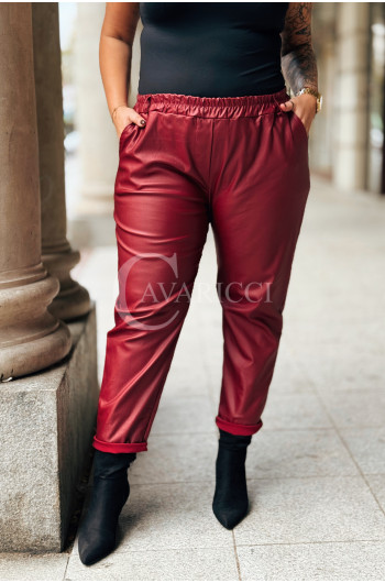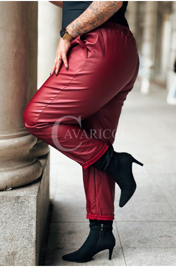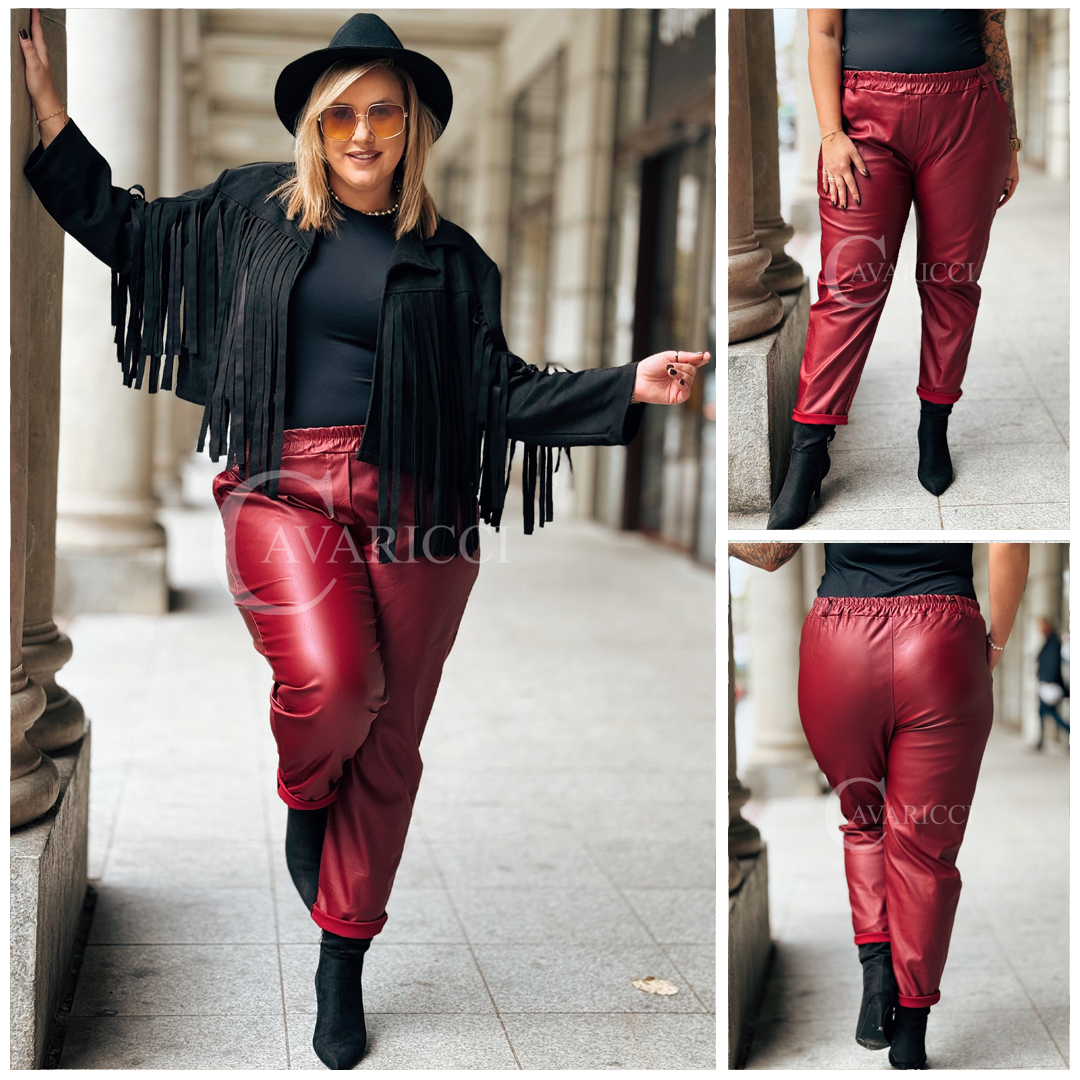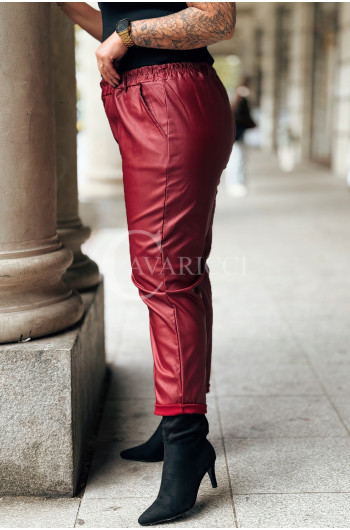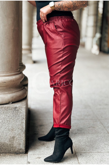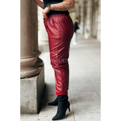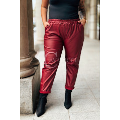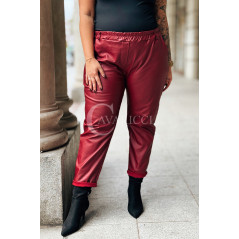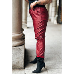 ZORA - miękka eko skóra, świetny krój i modny połysk spodnie w kolorze bordowym