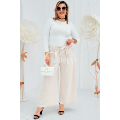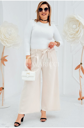 ZITA - Eleganckie długie spodnie z szeroką nogawką i kokardą w kolorze beżowym