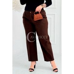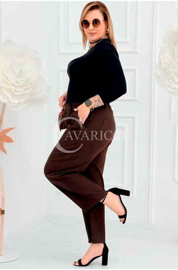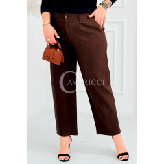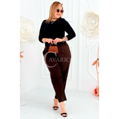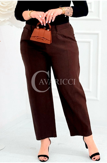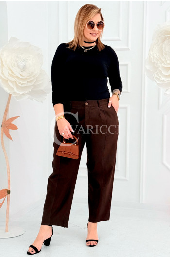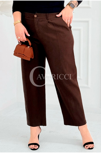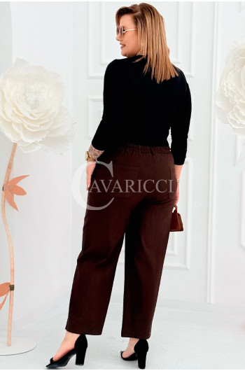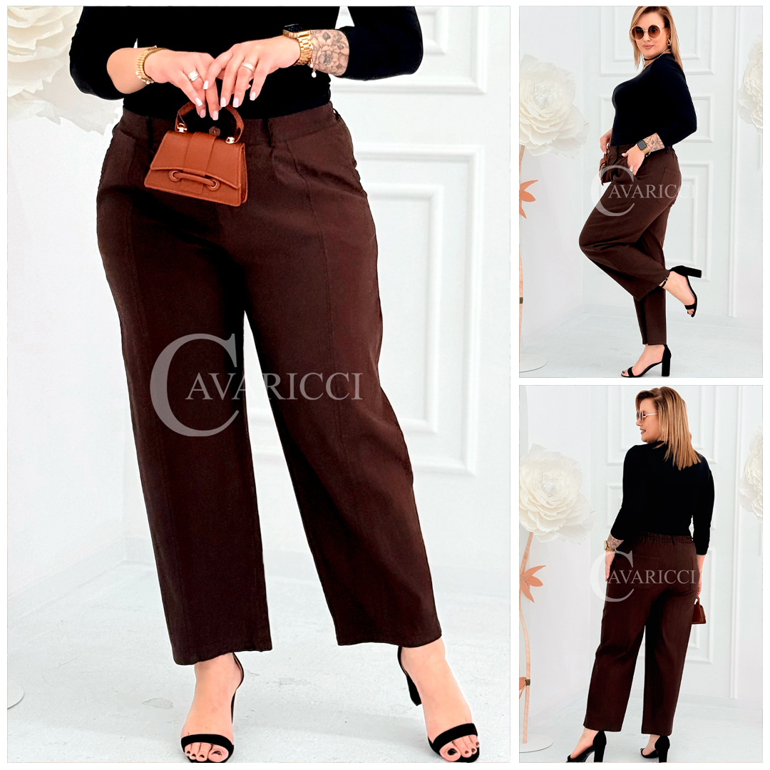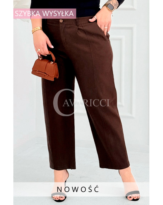 ZARA - Elastyczne spodnie z szeroką nogawką i przeszyciem w kolorze brązowym