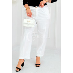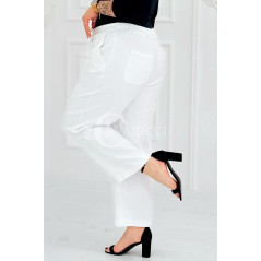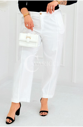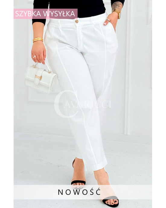 ZARA - Elastyczne spodnie z szeroką nogawką i przeszyciem w kolorze białym