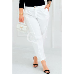 🧵 Przeszycie wzdłuż całej nogi z przodu – efekt „prasowanego kantem”, który modeluje i podkreśla linię nóg