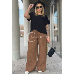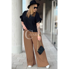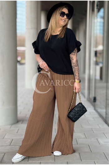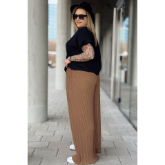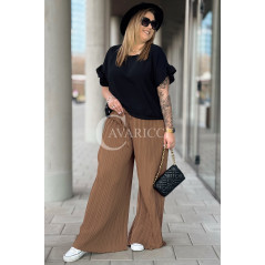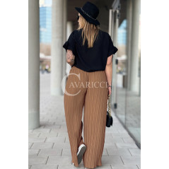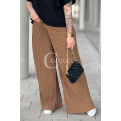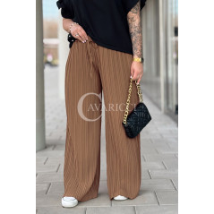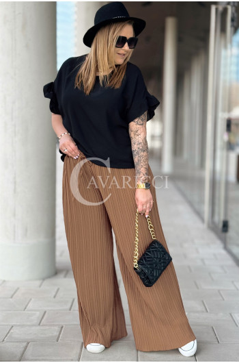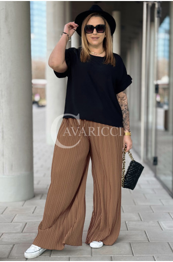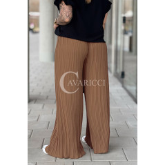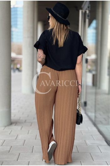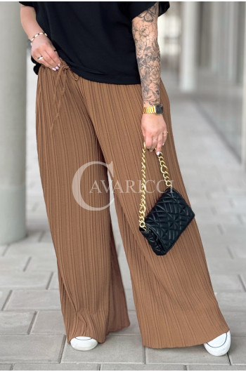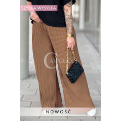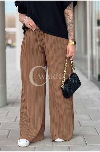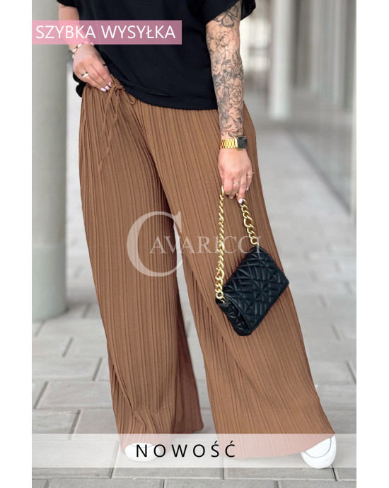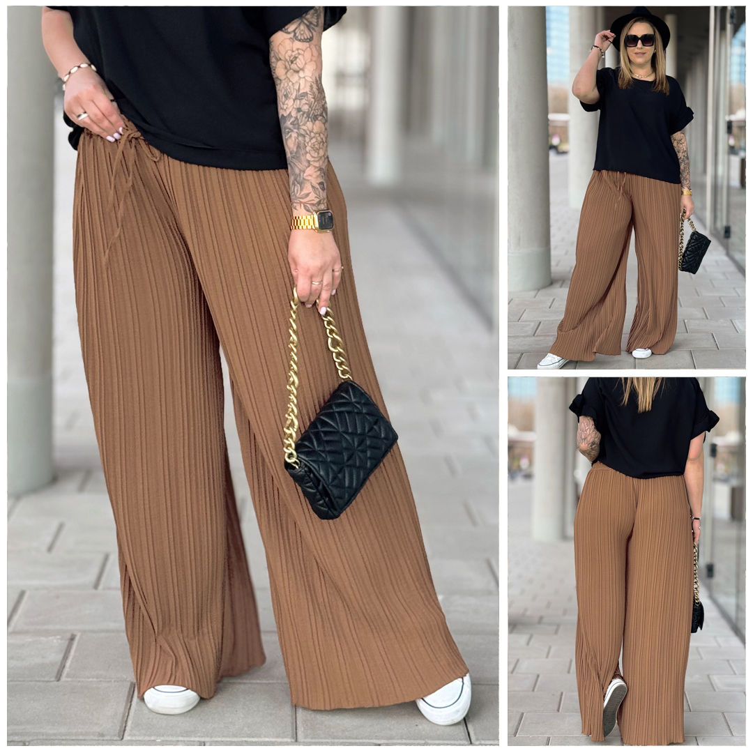 ZOE - Eleganckie luźne kreszowane spodnie w kolorze karmelowym