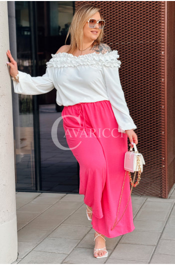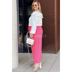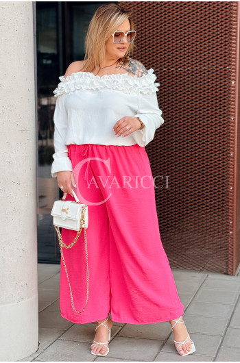 ZACCARIA - Spodnie z szeroką nogawką luźny fason w kolorze fuksji