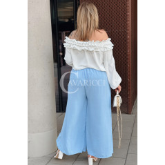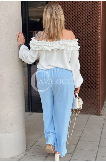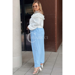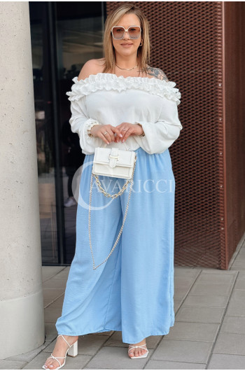 ZACCARIA - Spodnie z szeroką nogawką luźny fason w kolorze niebieskim