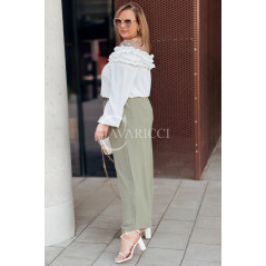 ZACCARIA - Spodnie z szeroką nogawką luźny fason w kolorze khaki