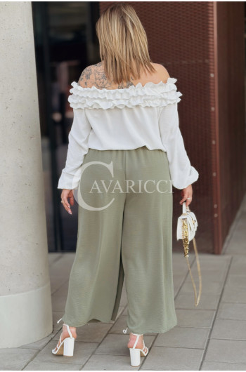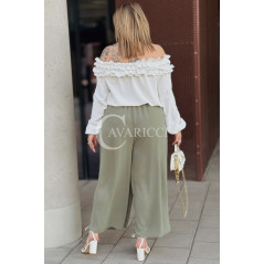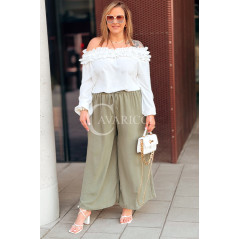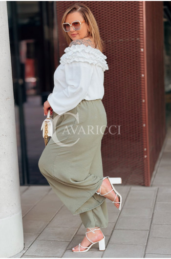 ZACCARIA - Spodnie z szeroką nogawką luźny fason w kolorze khaki