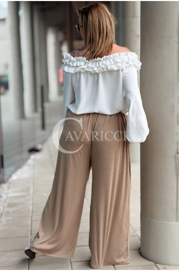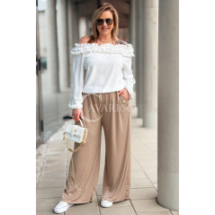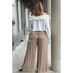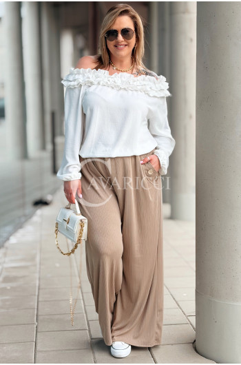 🤍 Szeroka nogawka pięknie wydłuża nogi i daje pełną swobodę ruchów.