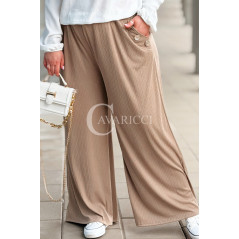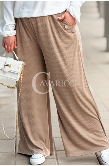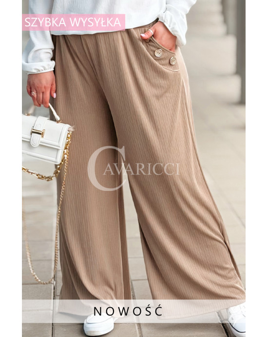 ZINERVA - Szerokie spodnie prążkowane z ozdobnymi złotymi guzikami w kolorze beżowy