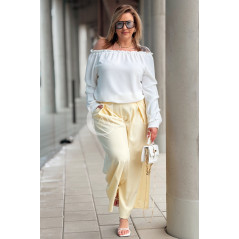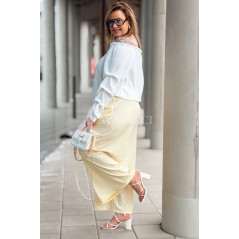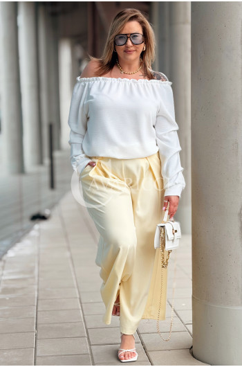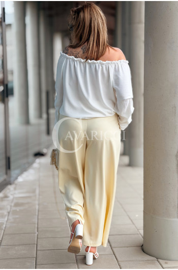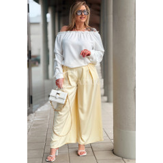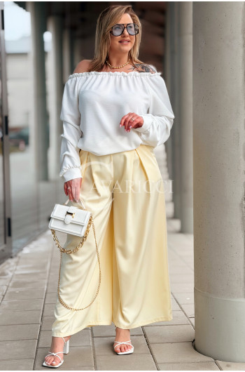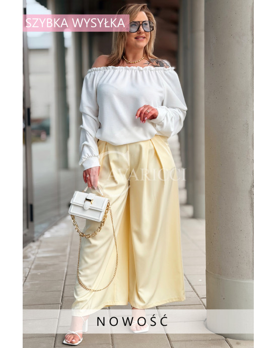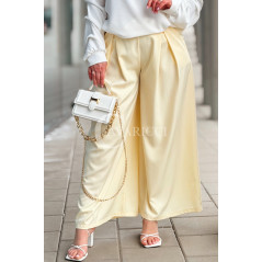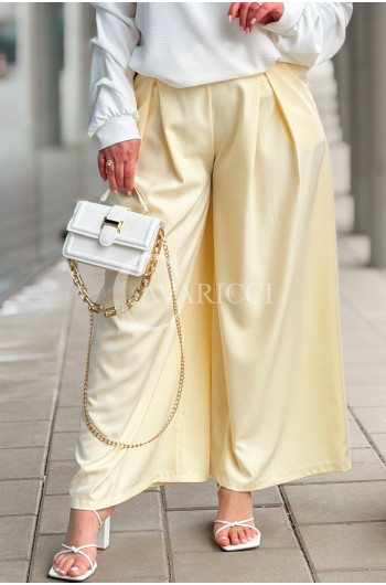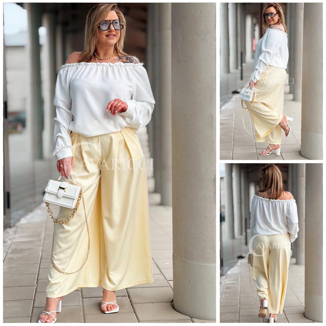 Spodnie ZANETTA – Zjawiskowe Szerokie Nogawki z Wysokim Stanem w Kolorze Bananowym