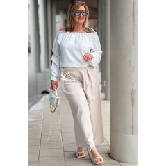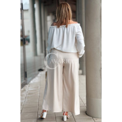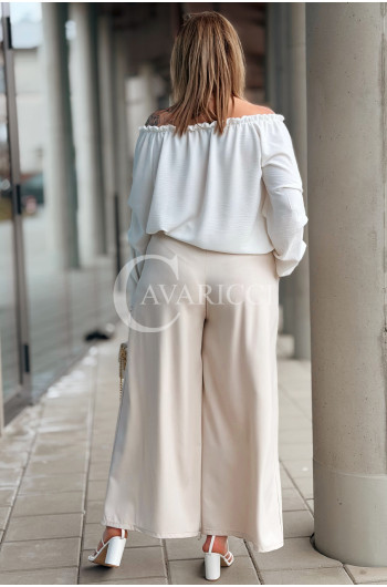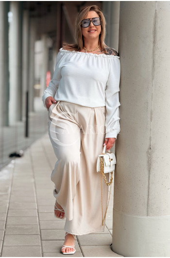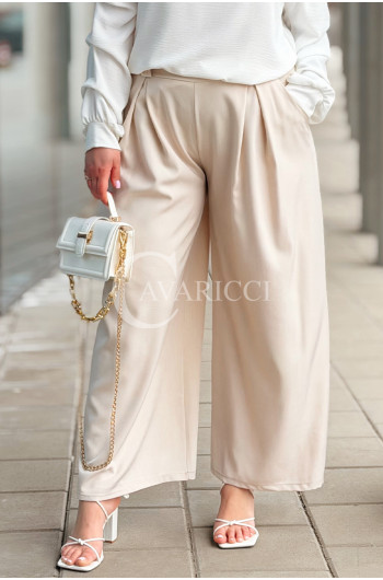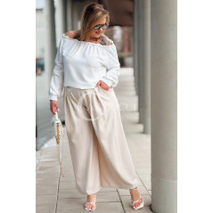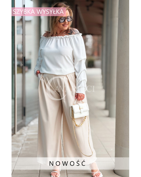Spodnie ZANETTA – Zjawiskowe Szerokie Nogawki z Wysokim Stanem w Kolorze Beżowym