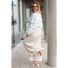 🌬️ Niesamowicie lejący, gładki materiał – spływa po sylwetce, nie pogrubiając jej i nadając stylizacji luksusowego sznytu.