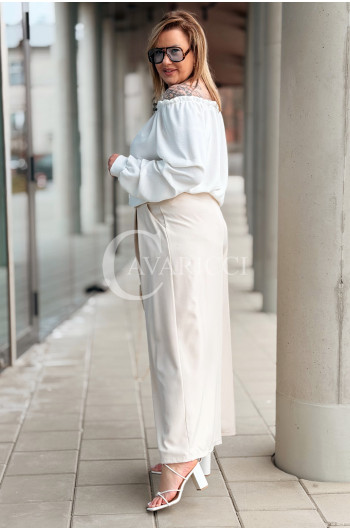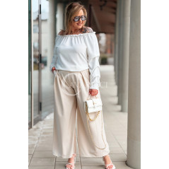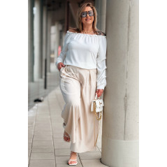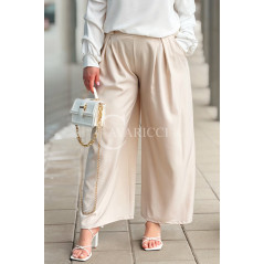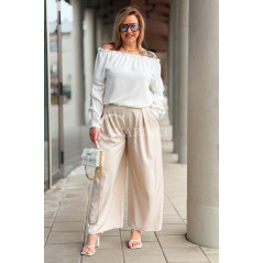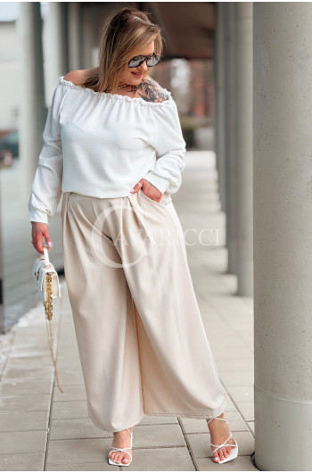 Spodnie ZANETTA – Zjawiskowe Szerokie Nogawki z Wysokim Stanem w Kolorze Beżowym