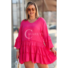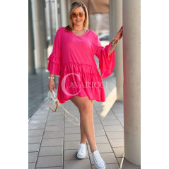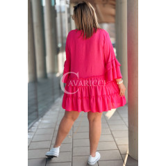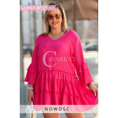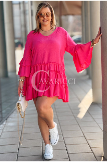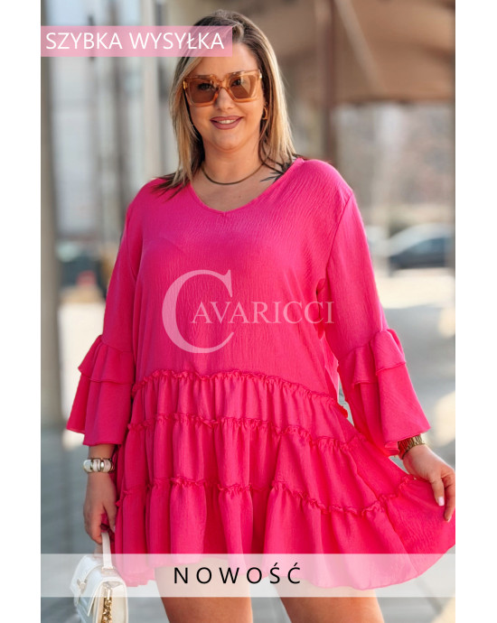 BASILIA - Sukienka midi z falbankami i luźnym rękawem w kolorze fuksji