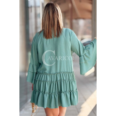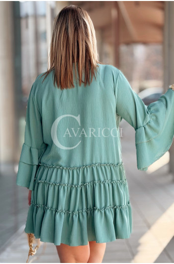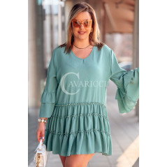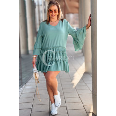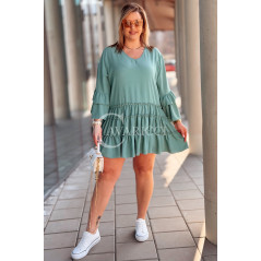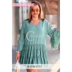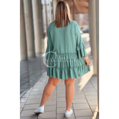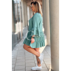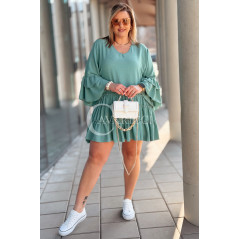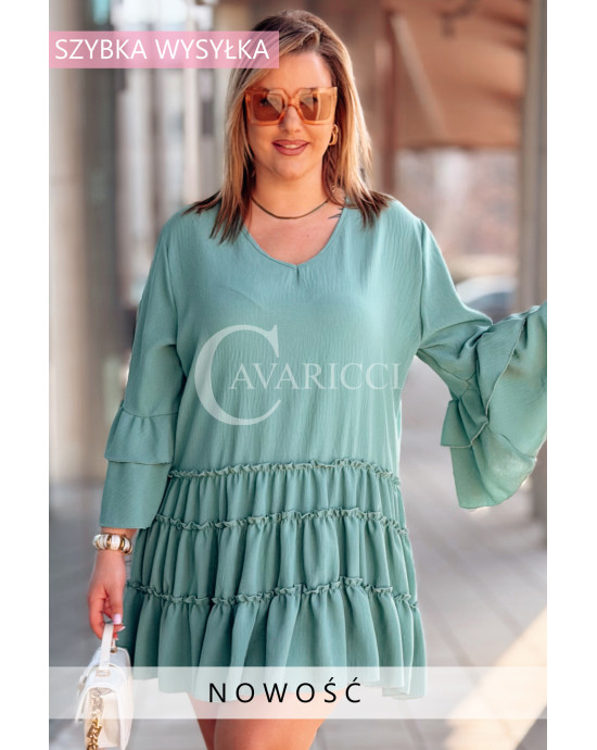 BASILIA - Sukienka midi z falbankami i luźnym rękawem w kolorze military