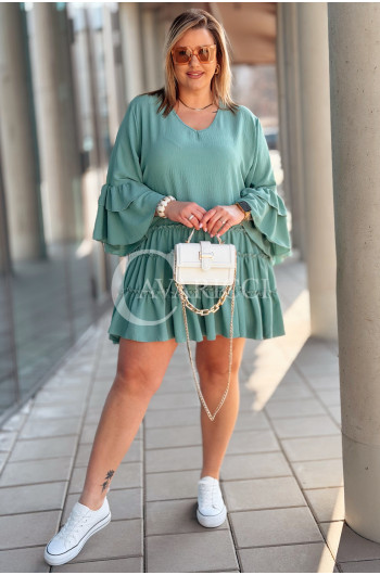 💕 Szeroki rękaw z falbaną robi efekt lekkości i dodaje stylizacji charakteru.