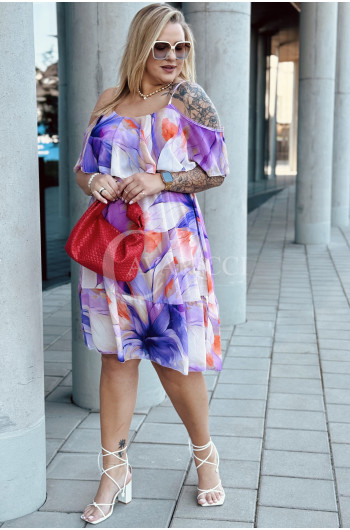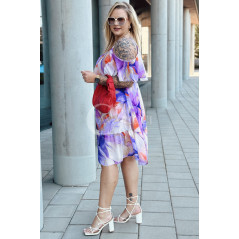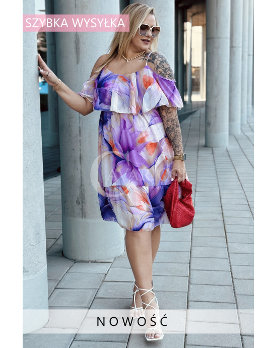 URBINO – Zwiewna i pełna luzu, z falbaną i odkrytymi ramionami eksponuje dekolt kolor lila