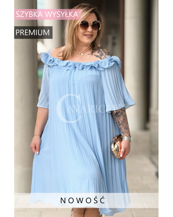 DIORKA - Premium urocza sukienka z falbankami w kolorze błękitnym