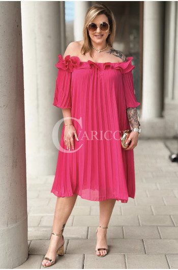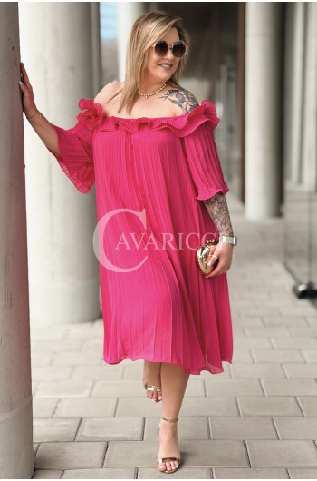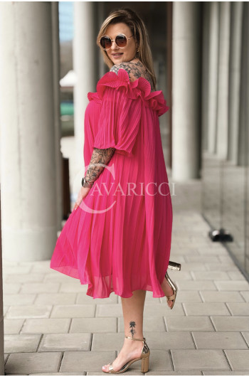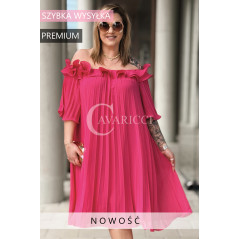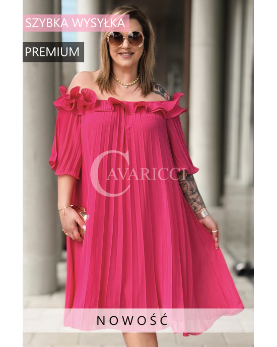 DIORKA - Premium urocza sukienka z falbankami w kolorze fuksji