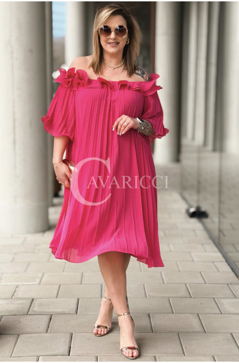 DIORKA - Premium urocza sukienka z falbankami w kolorze fuksji