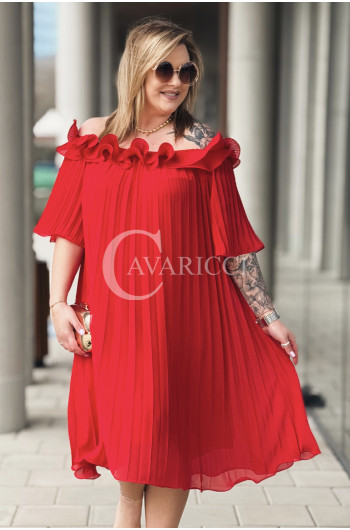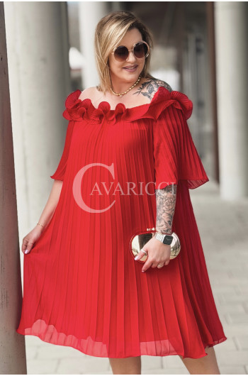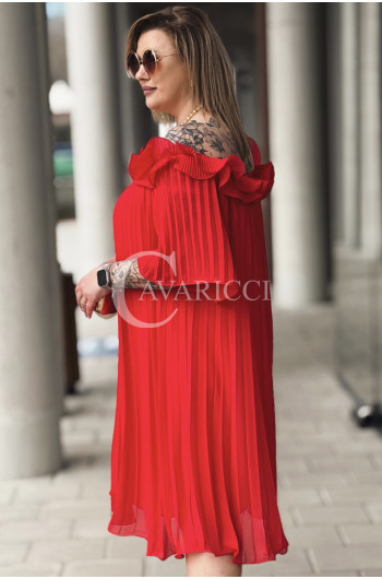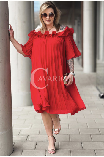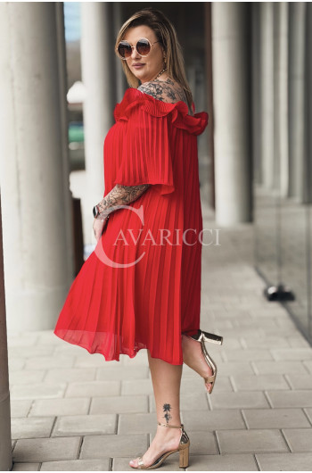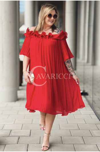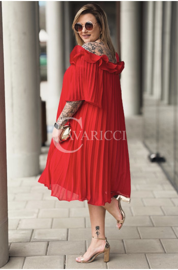 DIORKA - Premium urocza sukienka z falbankami w kolorze czerwonym