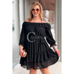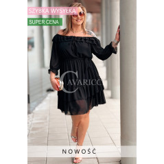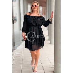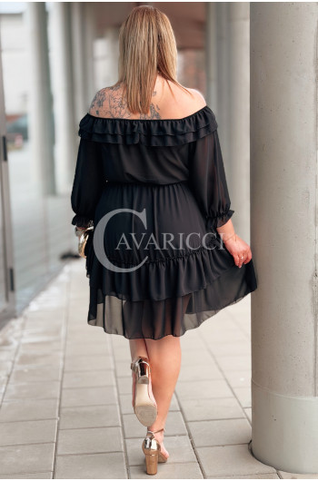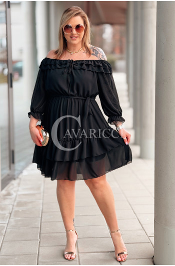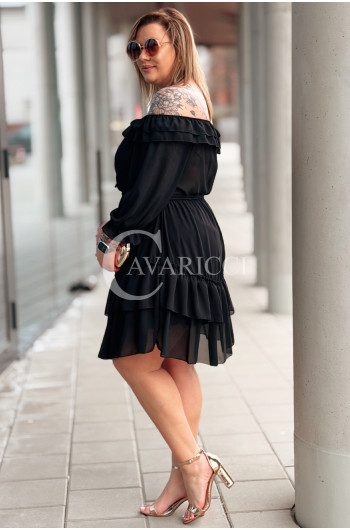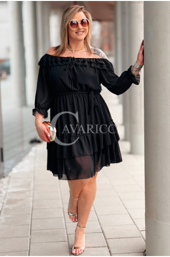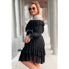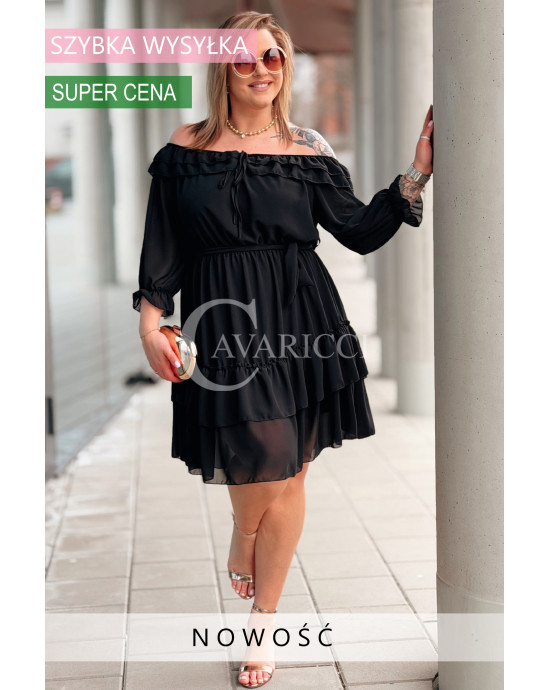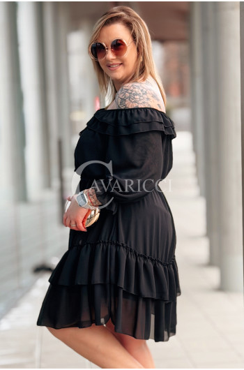ELISABETH - gładka sukienka hiszpanka z falbanami w kolorze czarnym