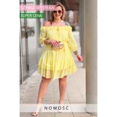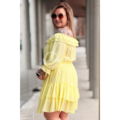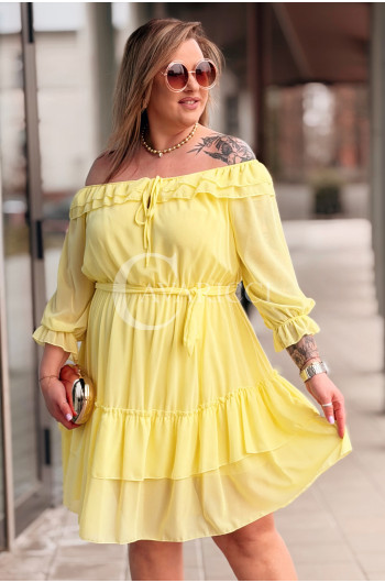 ELISABETH - gładka sukienka hiszpanka z falbanami w kolorze żółtym
