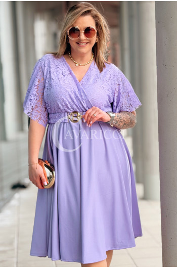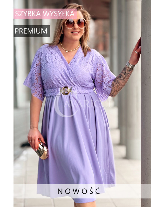 CLARISSA - Premium sukienka wizytowa z koronką i rozkloszowanym dołem w kolorze liliowym