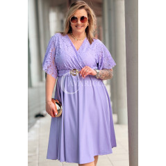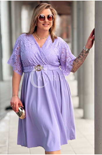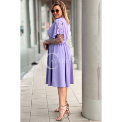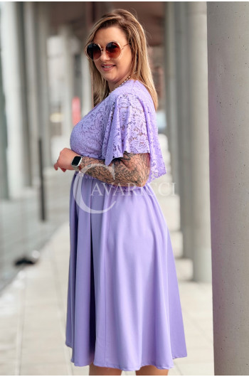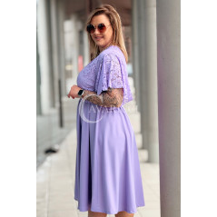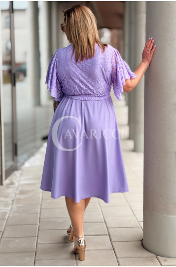 CLARISSA - Premium sukienka wizytowa z koronką i rozkloszowanym dołem w kolorze liliowym