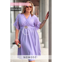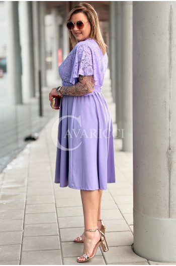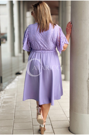 CLARISSA - Premium sukienka wizytowa z koronką i rozkloszowanym dołem w kolorze liliowym
