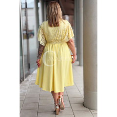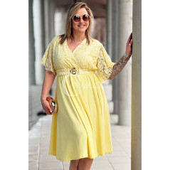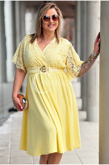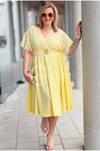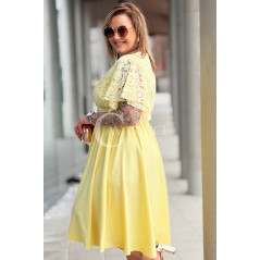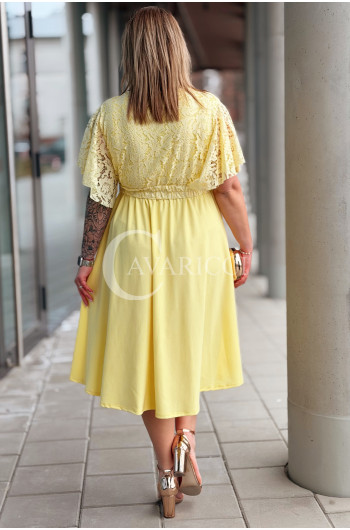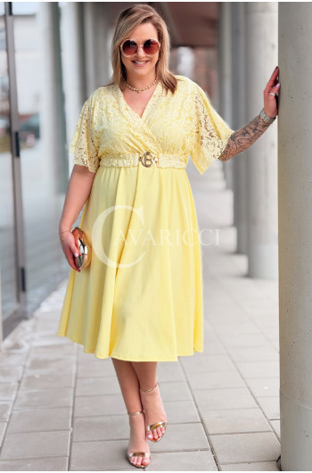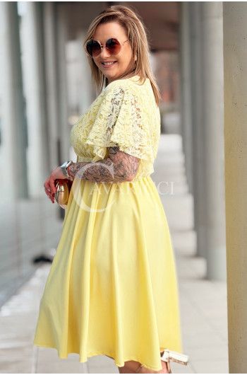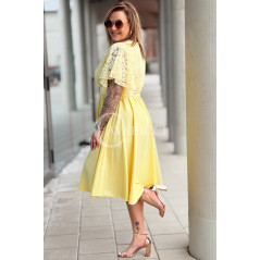 CLARISSA - Premium sukienka wizytowa z koronką i rozkloszowanym dołem w kolorze żółtym