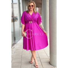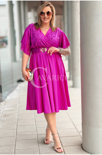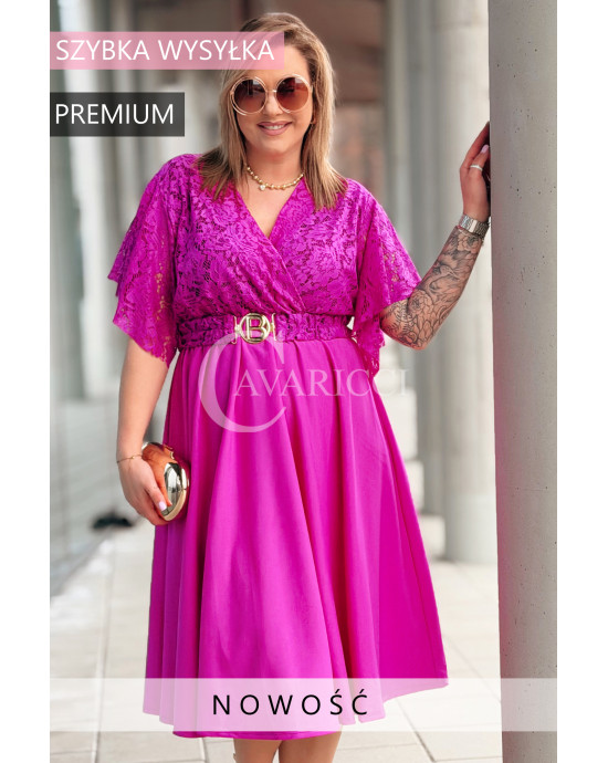 CLARISSA - Premium sukienka wizytowa z koronką i rozkloszowanym dołem w kolorze fuksji