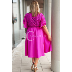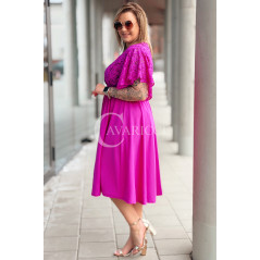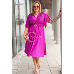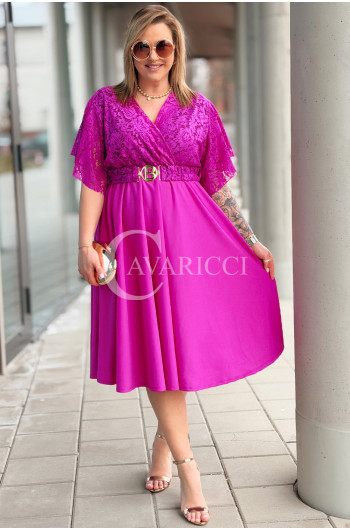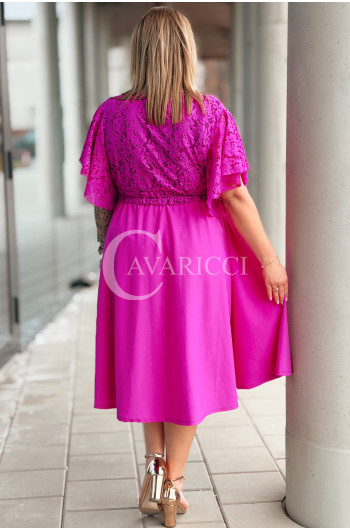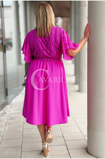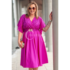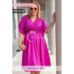 CLARISSA - Premium sukienka wizytowa z koronką i rozkloszowanym dołem w kolorze fuksji