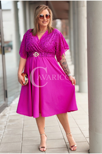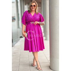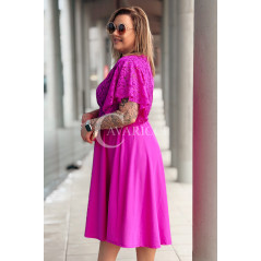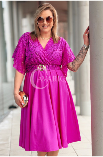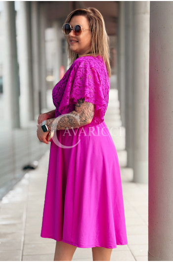 CLARISSA - Premium sukienka wizytowa z koronką i rozkloszowanym dołem w kolorze fuksji