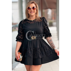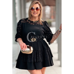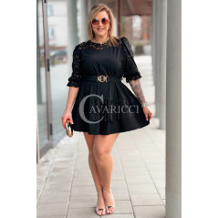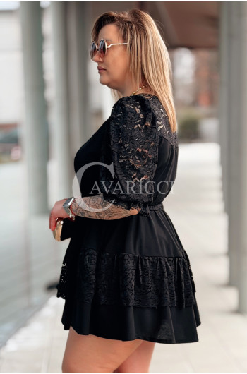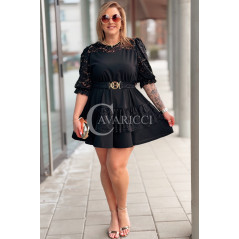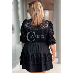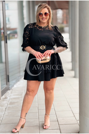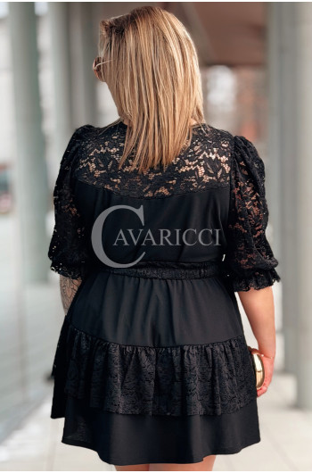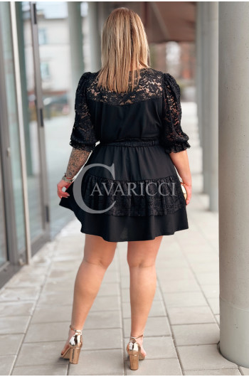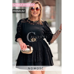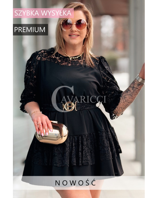 CHIARA - Sukienka elegancka nowość premium koronka pasek w kolorze czarnym