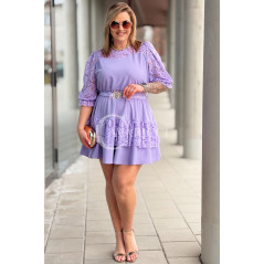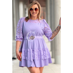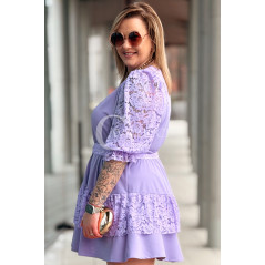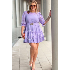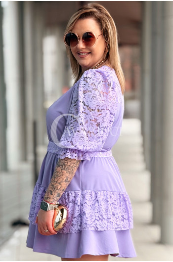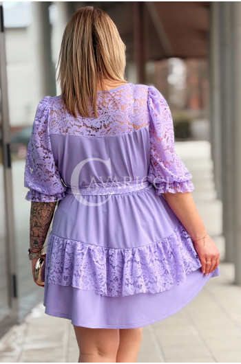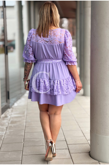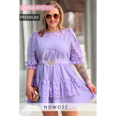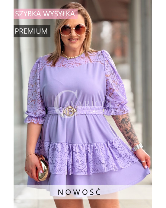 CHIARA - Sukienka elegancka nowość premium koronka pasek w kolorze lawendowym