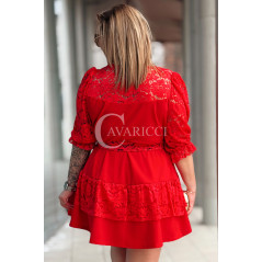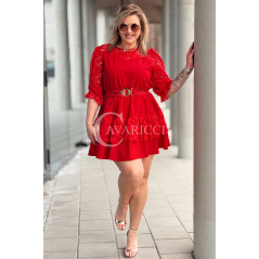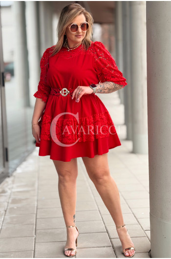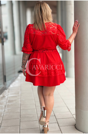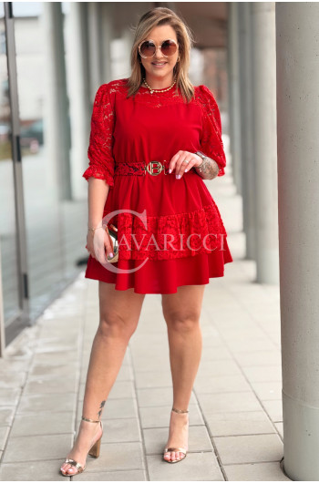 CHIARA - Sukienka elegancka nowość premium koronka pasek w kolorze czerwonym