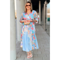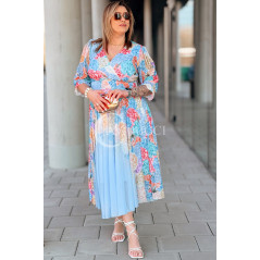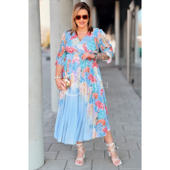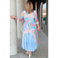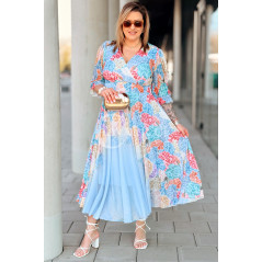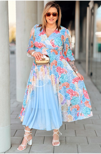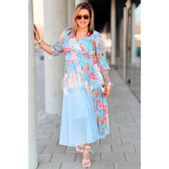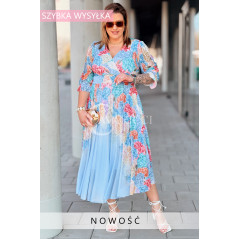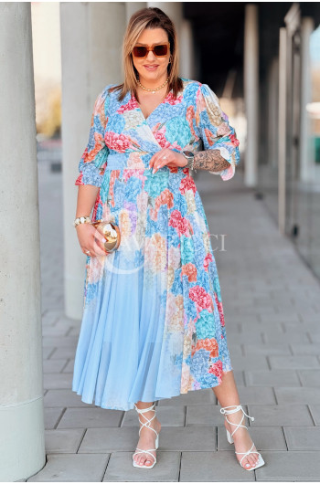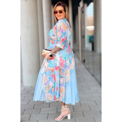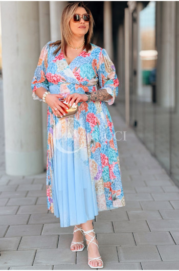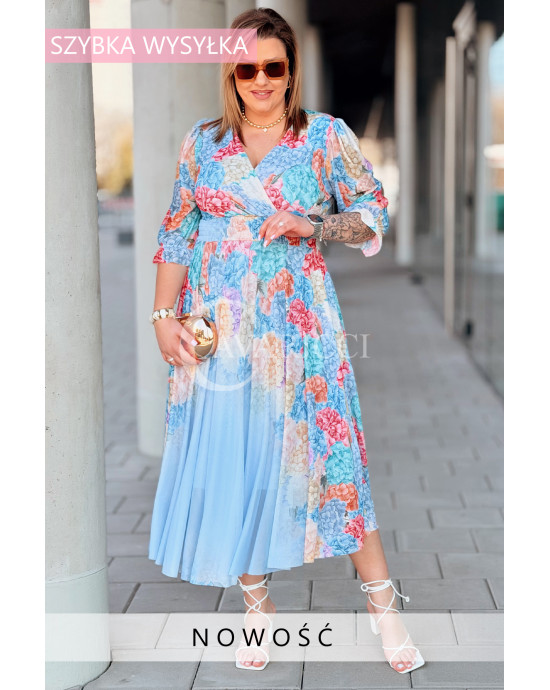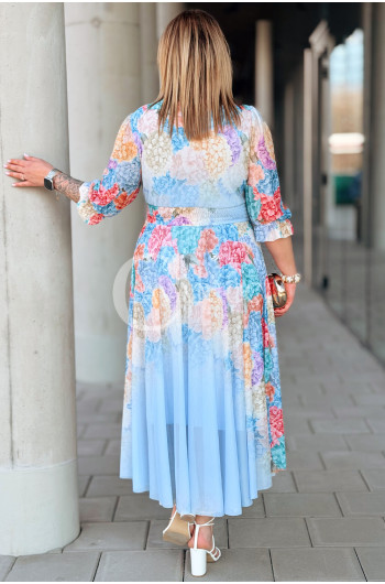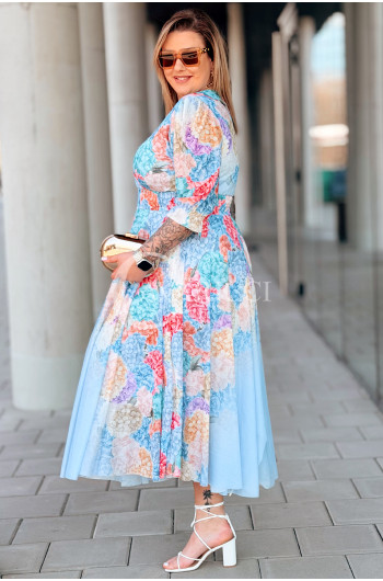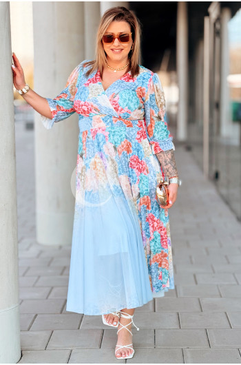 Sukienka CARLA – Zjawiskowa Siateczka w Kwiaty na Dzianinowej Podszewce Kolor Błękit